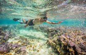 Het Great Barrier Reef, gelegen voor de kust van Queensland, Australië, is s werelds grootste koraalrif- ecosysteem. Dit immense rif...