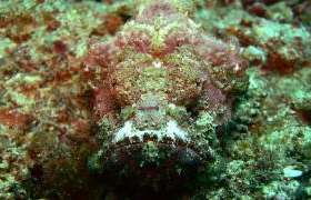 De steenvis Synanceia verrucosa, zou zo ingezet kunnen worden bij de geheime dienst. Hij kan perfect opgaan in zijn omgeving...