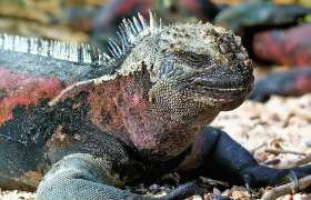 Zeeleguanen, Amblyrhynchus cristatus, komen uitsluitend voor op de Galapagoseilanden in de Stille Oceaan. De Galapagoseilanden liggen hemelsbreed km vanaf het...